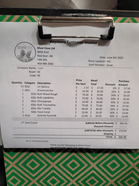 The total is already discounted with any sales you received, and you invoice is ready for check out. All you need to do is add it to your cart, along with any other items you would like to purchase and we will get your treasures on the way!