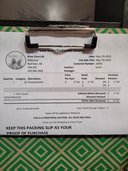 This is your invoice for the date listed above, and we hope you are as excited to get your items as we are! A photo of you invoice and your item(s) are included in this listing for you to review.