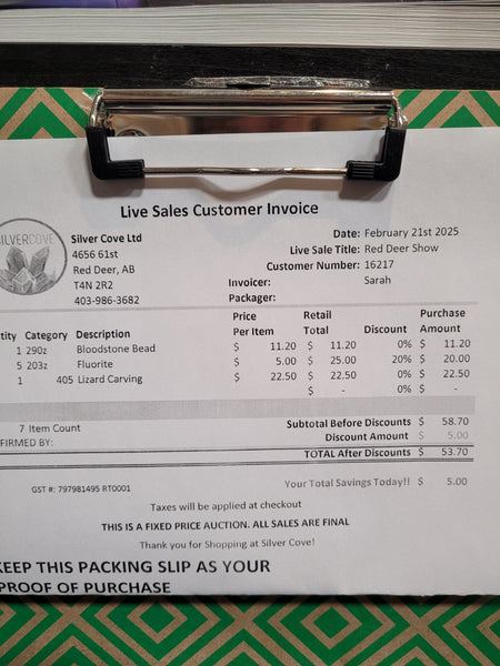 The total is already discounted with any sales you received, and you invoice is ready for check out. All you need to do is add it to your cart, along with any other items you would like to purchase and we will get your treasures on the way!