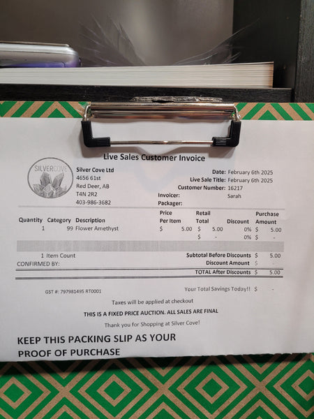 This is your invoice for the date listed above, and we hope you are as excited to get your items as we are! A photo of you invoice and your item(s) are included in this listing for you to review.