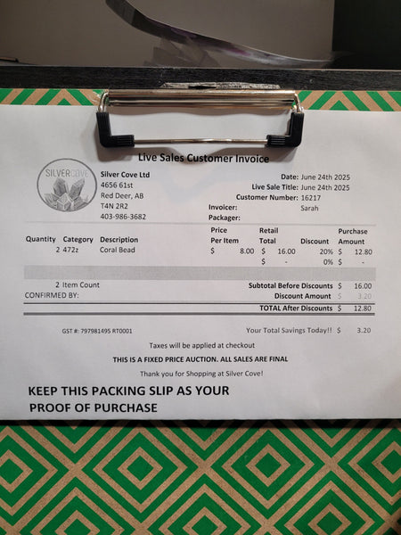 The total is already discounted with any sales you received, and you invoice is ready for check out. All you need to do is add it to your cart, along with any other items you would like to purchase and we will get your treasures on the way!