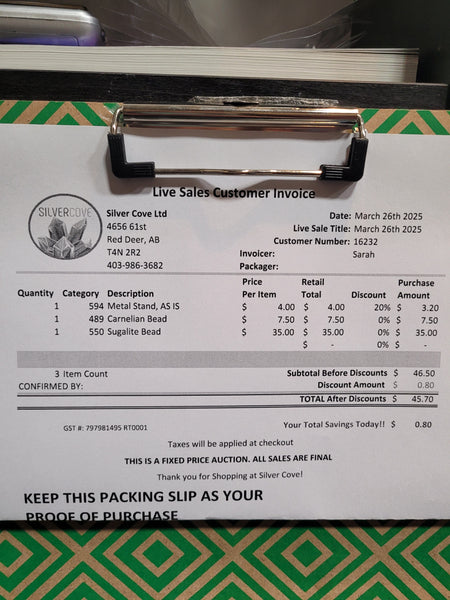 This is your invoice for the date listed above, and we hope you are as excited to get your items as we are! A photo of you invoice and your item(s) are included in this listing for you to review.