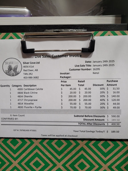 The total is already discounted with any sales you received, and you invoice is ready for check out. All you need to do is add it to your cart, along with any other items you would like to purchase and we will get your treasures on the way!