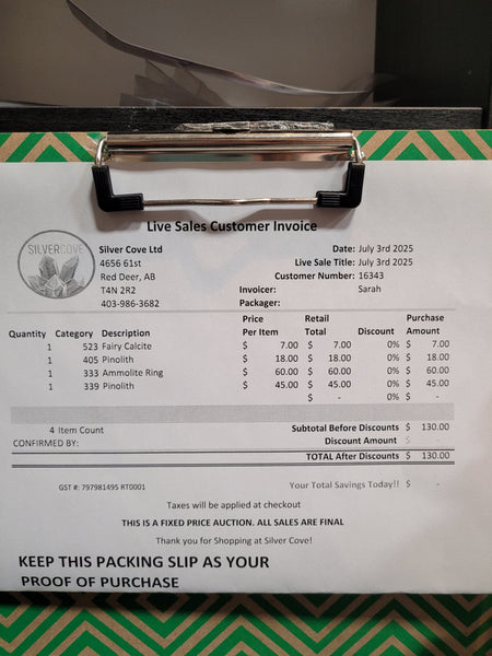This is your invoice for the date listed above, and we hope you are as excited to get your items as we are! A photo of you invoice and your item(s) are included in this listing for you to review.