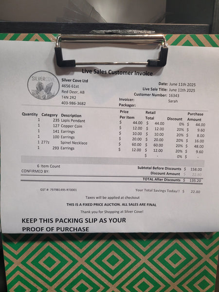This is your invoice for the date listed above, and we hope you are as excited to get your items as we are! A photo of you invoice and your item(s) are included in this listing for you to review.
