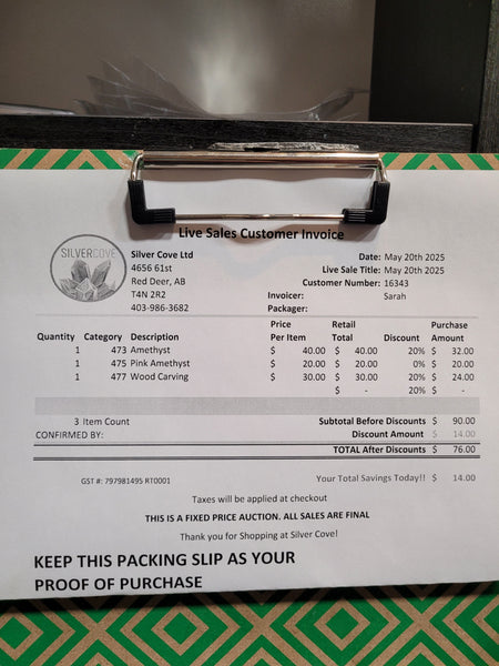 The total is already discounted with any sales you received, and you invoice is ready for check out. All you need to do is add it to your cart, along with any other items you would like to purchase and we will get your treasures on the way!