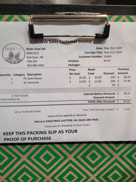 The total is already discounted with any sales you received, and you invoice is ready for check out. All you need to do is add it to your cart, along with any other items you would like to purchase and we will get your treasures on the way!