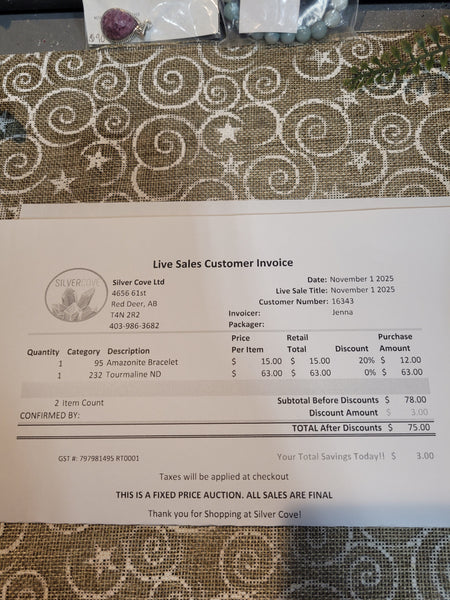 The total is already discounted with any sales you received, and you invoice is ready for check out. All you need to do is add it to your cart, along with any other items you would like to purchase and we will get your treasures on the way!