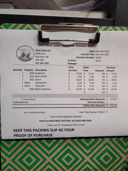 This is your invoice for the date listed above, and we hope you are as excited to get your items as we are! A photo of you invoice and your item(s) are included in this listing for you to review.