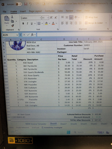 The total is already discounted with any sales you received, and you invoice is ready for check out. All you need to do is add it to your cart, along with any other items you would like to purchase and we will get your treasures on the way!