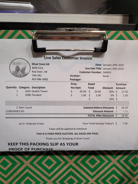The total is already discounted with any sales you received, and you invoice is ready for check out. All you need to do is add it to your cart, along with any other items you would like to purchase and we will get your treasures on the way!