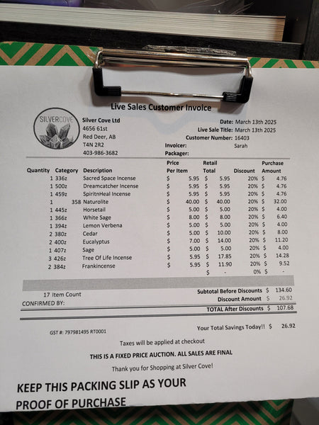 The total is already discounted with any sales you received, and you invoice is ready for check out. All you need to do is add it to your cart, along with any other items you would like to purchase and we will get your treasures on the way!