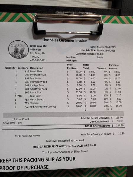 The total is already discounted with any sales you received, and you invoice is ready for check out. All you need to do is add it to your cart, along with any other items you would like to purchase and we will get your treasures on the way!