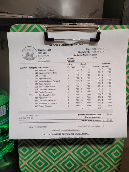 The total is already discounted with any sales you received, and you invoice is ready for check out. All you need to do is add it to your cart, along with any other items you would like to purchase and we will get your treasures on the way!