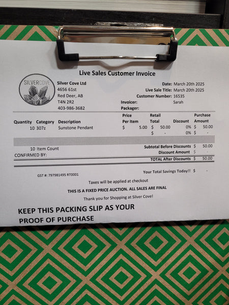 The total is already discounted with any sales you received, and you invoice is ready for check out. All you need to do is add it to your cart, along with any other items you would like to purchase and we will get your treasures on the way!