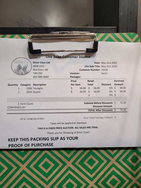 This is your invoice for the date listed above, and we hope you are as excited to get your items as we are! A photo of you invoice and your item(s) are included in this listing for you to review.