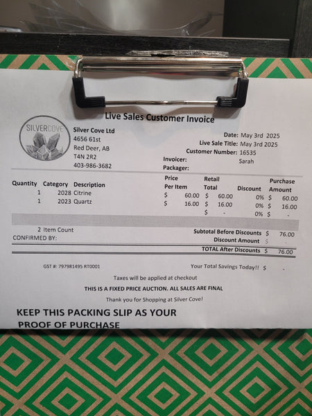 This is your invoice for the date listed above, and we hope you are as excited to get your items as we are! A photo of you invoice and your item(s) are included in this listing for you to review.