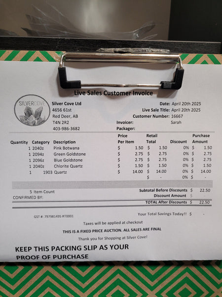 The total is already discounted with any sales you received, and you invoice is ready for check out. All you need to do is add it to your cart, along with any other items you would like to purchase and we will get your treasures on the way!