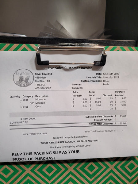 This is your invoice for the date listed above, and we hope you are as excited to get your items as we are! A photo of you invoice and your item(s) are included in this listing for you to review.