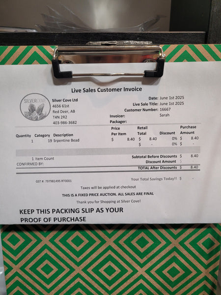 This is your invoice for the date listed above, and we hope you are as excited to get your items as we are! A photo of you invoice and your item(s) are included in this listing for you to review.