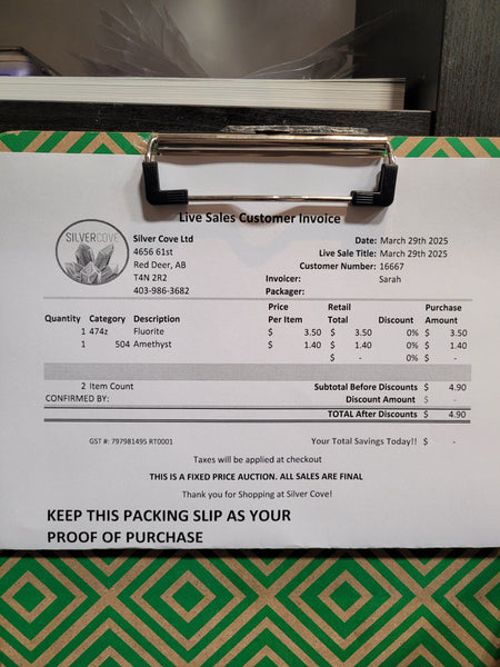 The total is already discounted with any sales you received, and you invoice is ready for check out. All you need to do is add it to your cart, along with any other items you would like to purchase and we will get your treasures on the way!