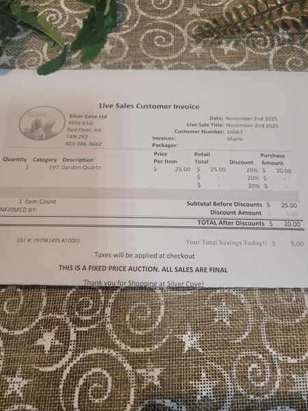 The total is already discounted with any sales you received, and you invoice is ready for check out. All you need to do is add it to your cart, along with any other items you would like to purchase and we will get your treasures on the way!