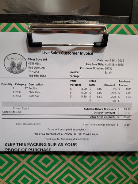 This is your invoice for the date listed above, and we hope you are as excited to get your items as we are! A photo of you invoice and your item(s) are included in this listing for you to review.