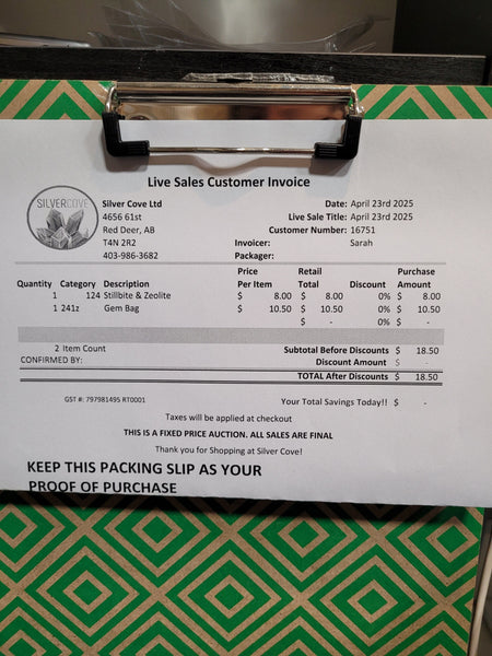 The total is already discounted with any sales you received, and you invoice is ready for check out. All you need to do is add it to your cart, along with any other items you would like to purchase and we will get your treasures on the way!