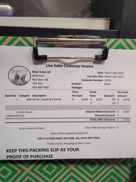 This is your invoice for the date listed above, and we hope you are as excited to get your items as we are! A photo of you invoice and your item(s) are included in this listing for you to review.