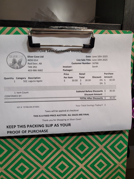 This is your invoice for the date listed above, and we hope you are as excited to get your items as we are! A photo of you invoice and your item(s) are included in this listing for you to review.
