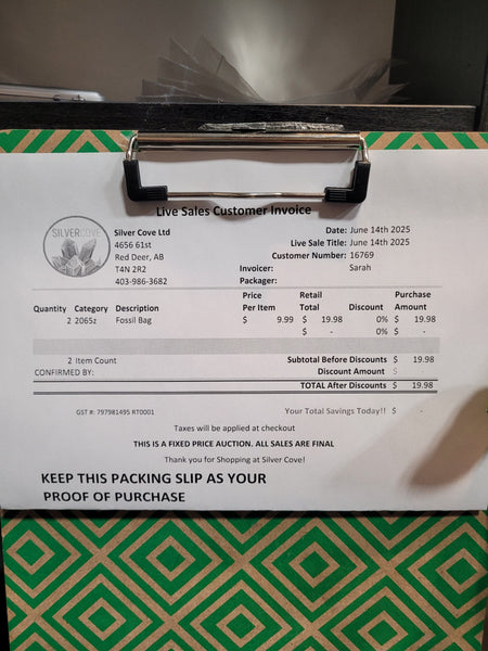 This is your invoice for the date listed above, and we hope you are as excited to get your items as we are! A photo of you invoice and your item(s) are included in this listing for you to review.