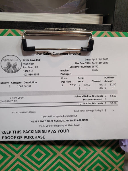 This is your invoice for the date listed above, and we hope you are as excited to get your items as we are! A photo of you invoice and your item(s) are included in this listing for you to review.