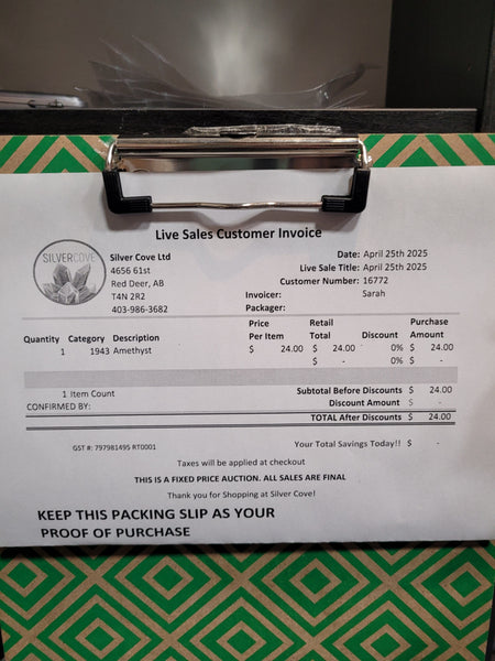 This is your invoice for the date listed above, and we hope you are as excited to get your items as we are! A photo of you invoice and your item(s) are included in this listing for you to review.