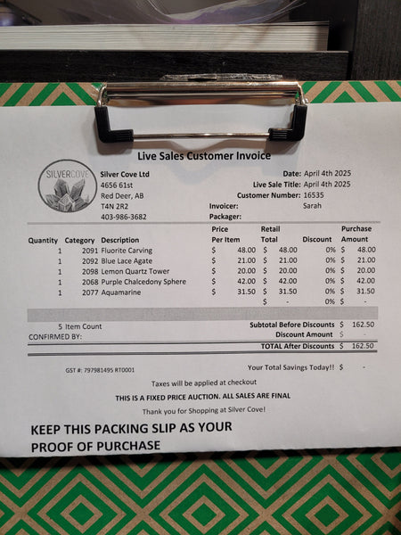 This is your invoice for the date listed above, and we hope you are as excited to get your items as we are! A photo of you invoice and your item(s) are included in this listing for you to review.