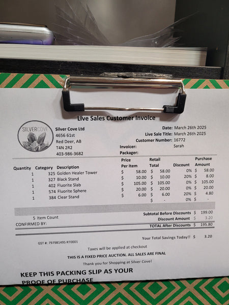 This is your invoice for the date listed above, and we hope you are as excited to get your items as we are! A photo of you invoice and your item(s) are included in this listing for you to review.