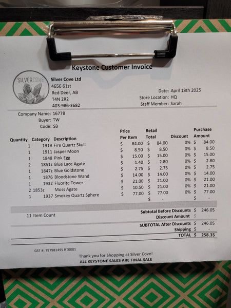 This is your invoice for the date listed above, and we hope you are as excited to get your items as we are! A photo of you invoice and your item(s) are included in this listing for you to review.