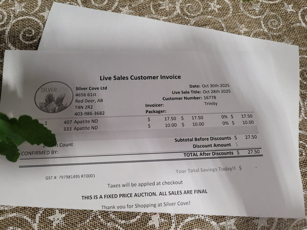 The total is already discounted with any sales you received, and you invoice is ready for check out. All you need to do is add it to your cart, along with any other items you would like to purchase and we will get your treasures on the way!