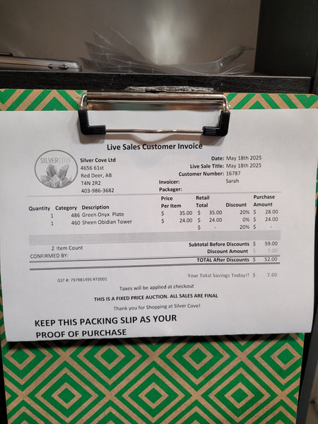 This is your invoice for the date listed above, and we hope you are as excited to get your items as we are! A photo of you invoice and your item(s) are included in this listing for you to review.