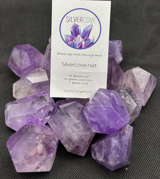 Metaphysical: Amethyst helps to support healing on all levels.  Its vibration brings a calm focus to one's emotions, soothes the body, and helps to release anything that isn't serving.  It then acts as a comforting stone that transmutes negativity and allows space to open for positivity.  Amethyst enhances spiritual awareness and higher consciousness, as well as helps to provide protection in the spiritual realms.  It also helps with the development of intuition and psychic abilities.