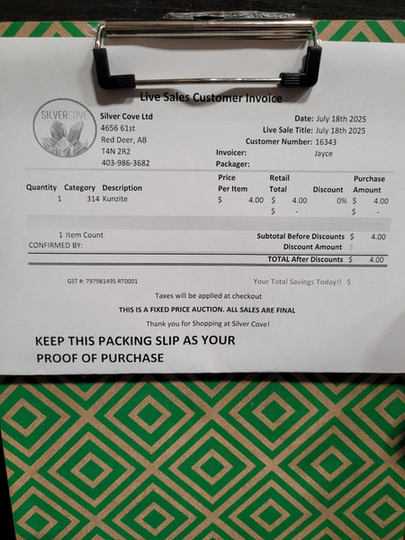 This is your invoice for the date listed above, and we hope you are as excited to get your items as we are! A photo of you invoice and your item(s) are included in this listing for you to review.