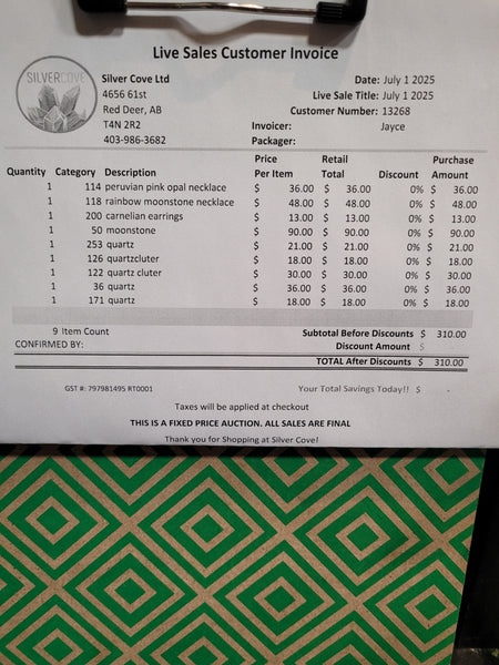 This is your invoice for the date listed above, and we hope you are as excited to get your items as we are! A photo of you invoice and your item(s) are included in this listing for you to review.