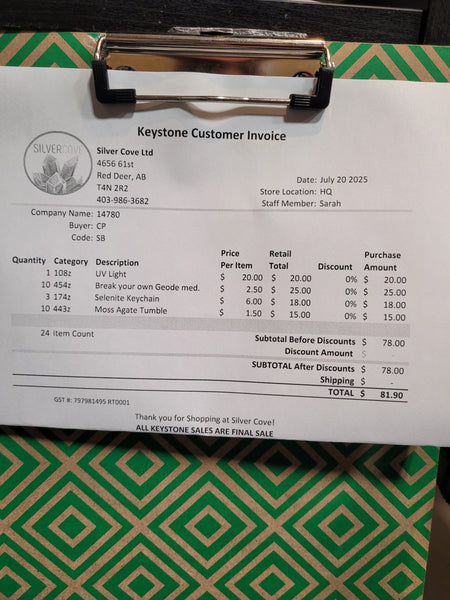 This is your invoice for the date listed above, and we hope you are as excited to get your items as we are! A photo of you invoice and your item(s) are included in this listing for you to review.