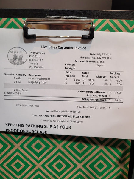 This is your invoice for the date listed above, and we hope you are as excited to get your items as we are! A photo of you invoice and your item(s) are included in this listing for you to review.