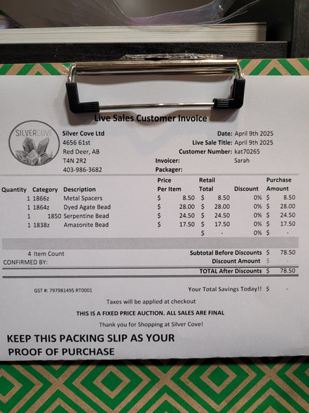 This is your invoice for the date listed above, and we hope you are as excited to get your items as we are! A photo of you invoice and your item(s) are included in this listing for you to review.