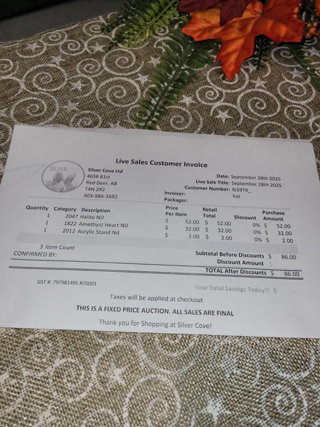 The total is already discounted with any sales you received, and you invoice is ready for check out. All you need to do is add it to your cart, along with any other items you would like to purchase and we will get your treasures on the way!