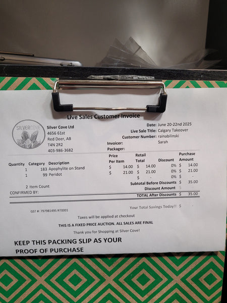 This is your invoice for the date listed above, and we hope you are as excited to get your items as we are! A photo of you invoice and your item(s) are included in this listing for you to review.