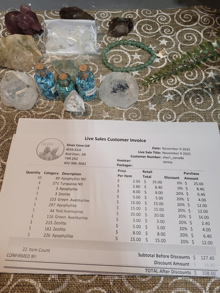 The total is already discounted with any sales you received, and you invoice is ready for check out. All you need to do is add it to your cart, along with any other items you would like to purchase and we will get your treasures on the way!